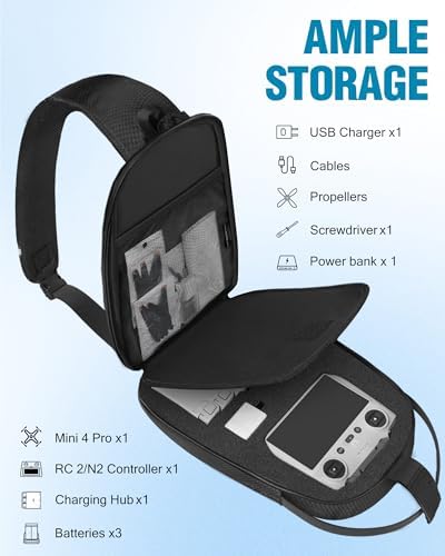 Mini 4 Pro Case, Waterproof Hard Carrying Case, Portable Travel Drone Sling Backpack, Crossbody Bag Compatible with DJI Mini 4 Pro, RC 2/ RC-N2 Controller, Fly More Combo and Accessories