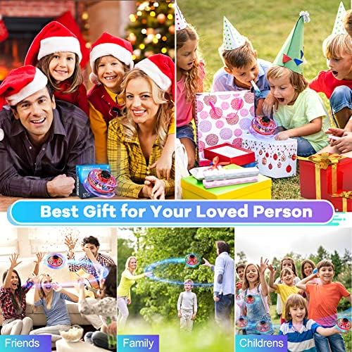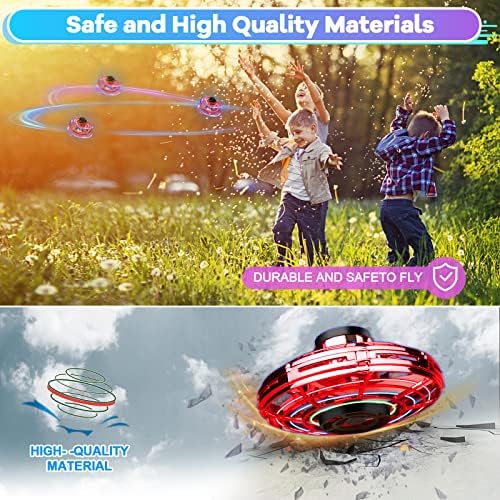 Fun and Simple UFO Drone Flying Toy:Turn on the power button of flying toys,hold down the center axis to rotate the wheel to start,then throw it away and fly.Different throwing speeds and angles allow different flight paths,tricks,and high-speed maneuvers.Stop the flying by grabbing the mini drone with your hand.You can have fun with friends, family,colleagues indoors,outdoors,at school and in the office.Hover toy is a popular social game at birthday parties,family gatherings