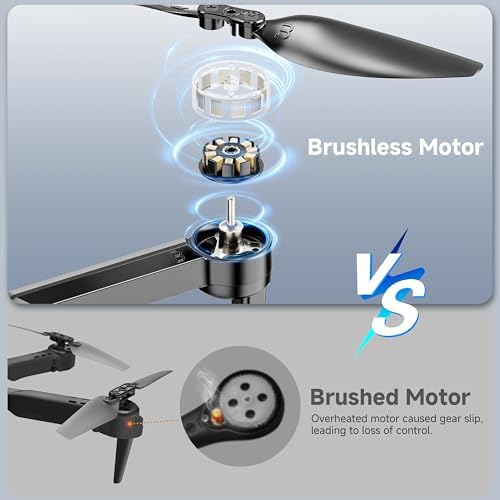 【Brushless Drones: Stability, Efficiency, Wind Resistance】Compared to brushed models, brushless drones with camera for adults 4k offer longer lifespan and greater stability, using less power. They eliminate overheating issues and excel in high-speed conditions while resisting wind for stable flights.