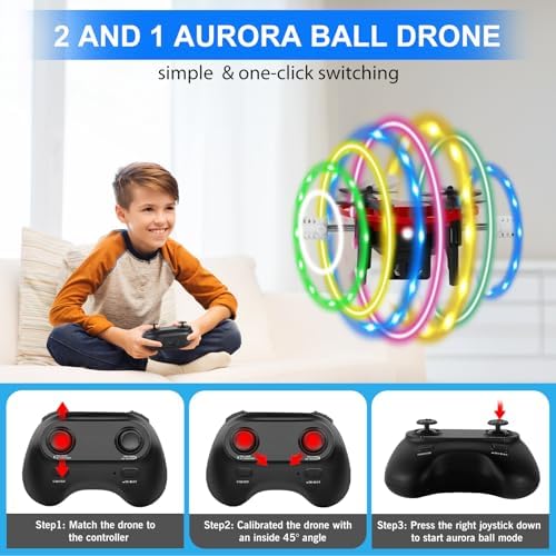 Mini Drones for Kids Beginners & Adults, RC Drone & Aurora Ball 2 in 1 Toy with One Key Take Off-Landing, 360° Spinning, Aurora Ball Mode, 2 Batteries, Quadcopter Fly Toy for Boy Girl Gifts