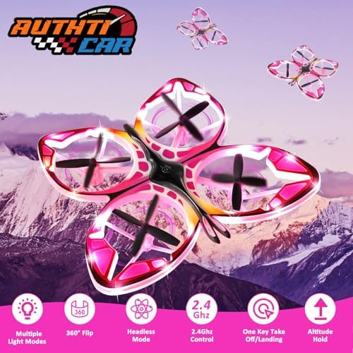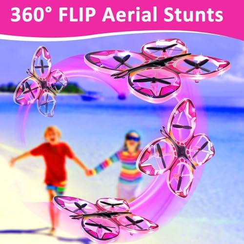 Kids Mini Drone – RC Butterfly Drone for Beginners with Colorful Light, 3D Flip, Headless Mode, Altitude Hold, Remote Control Quadcopter Gift for Age 6-14 Boys & Girls