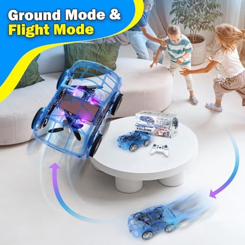 RC Drone Car Mini RC Drone & Flying Car, Remote Control Quadcopter with One Key Take Off/Landing, LED Lights, Easy to Fly Toy Drones for Kids 8-12