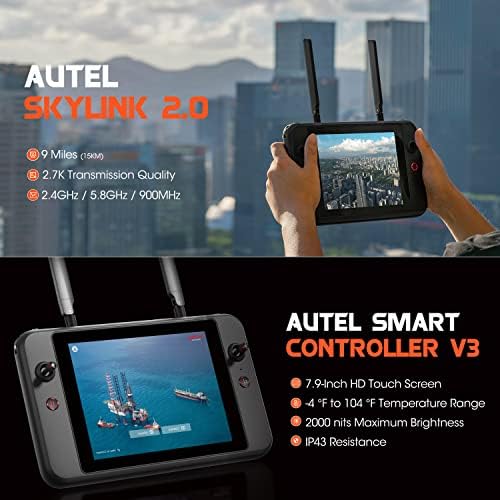 👍【AUTEL SKYLINK 2.0 VIDEO TRANSMISSION】SkyLink 2.0 is built into the EVO II Dual 640T Enterprise V3 c~hipset, expanding the possibilities for your most critical workflows. Autel SkyLink 2.0 extends HD video transmission up to 15 KM, Obtain critical details with QHD video within 1km, Support 2.4G/5.8G/900MHz tri-band communication and automatically frequency hop for maximum anti-interference capability