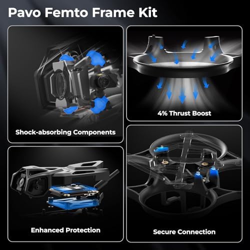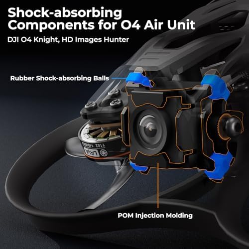 Shock-Absorbing Components: To ensure crystal-clear video, the Pavo Femto includes a specialized shock-absorbing system for the DJI O4 Air Unit. Made from ultra-strong POM material, the shock-absorbing components effectively isolates high-frequency vibrations, reducing jello effect and delivering stable, professional-grade footage