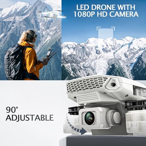 Drone with Camera 1080P HD – Foldable FPV Mini Drones with LED Lights for Adults Kids and Beginners, Toys Gifts RC Quadcopter with One Key Take Off, 3D Flips for Boys Girls with 2 Batteries, White
