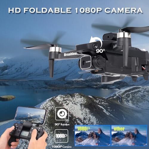 GoolRC Drone with Camera for Adults, 1080P HD FPV Foldable Mini Drones for Kids Beginners, Brushless RC Quadcopter with Altitude Hold, Headless Mode, 360° Flips, Gesture Selfie, One Key Takeoff