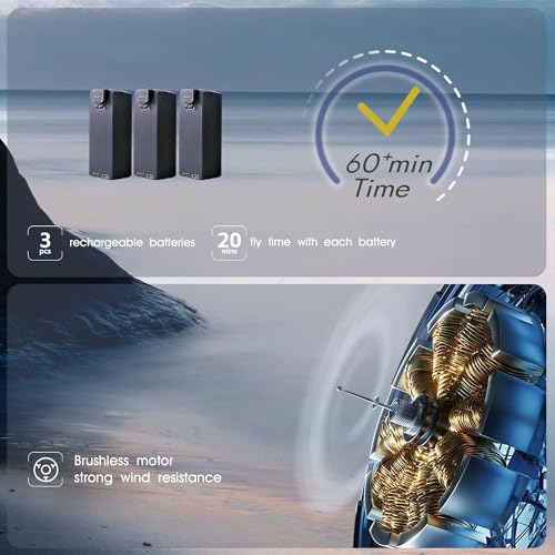 2650 ft Long Range Super Endurance Foldable Drone with Camera for Beginners–60+ min Flight Time, WiFi FPV Quadcopter with 4K HD Camera, Brushless Motor, Auto Hover, Follow Me (3 Batteries)