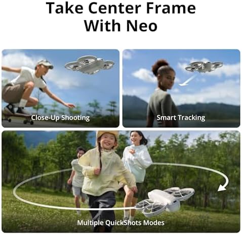 Smallest Ever: The DJI Neo Drone is DJI’s first palm-sized drone weighing 135 grams. It can easily take off and land on a palm, making it compact yet super-efficient