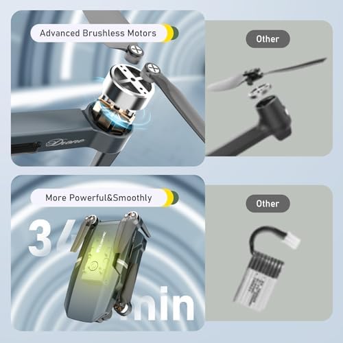 【Extended Flight Time】Aerial photography drone with brushless motor features 2 modular smart batteries, providing 34 minutes of flight time for capturing beautiful videos and photos. With less charging required, you can enjoy more flying. Its foldable fuselage design allows for easy storage and portability during outdoor travel. This camera-equipped drone is perfect for adult and teen users, offering optimal performance.