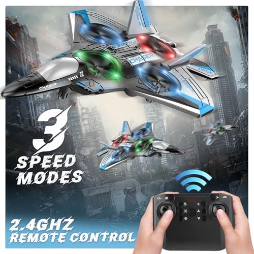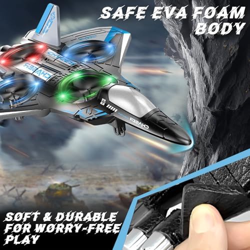 Jet Fighter Stunt RC Plane – Foam Remote Control Drone Helicopter Airplane with LED Lights, Drones for Kids, Toys for Ages 8-13, Gifts for 6 7 8 10 12 13 14 Year Old Boys Birthday Christmas